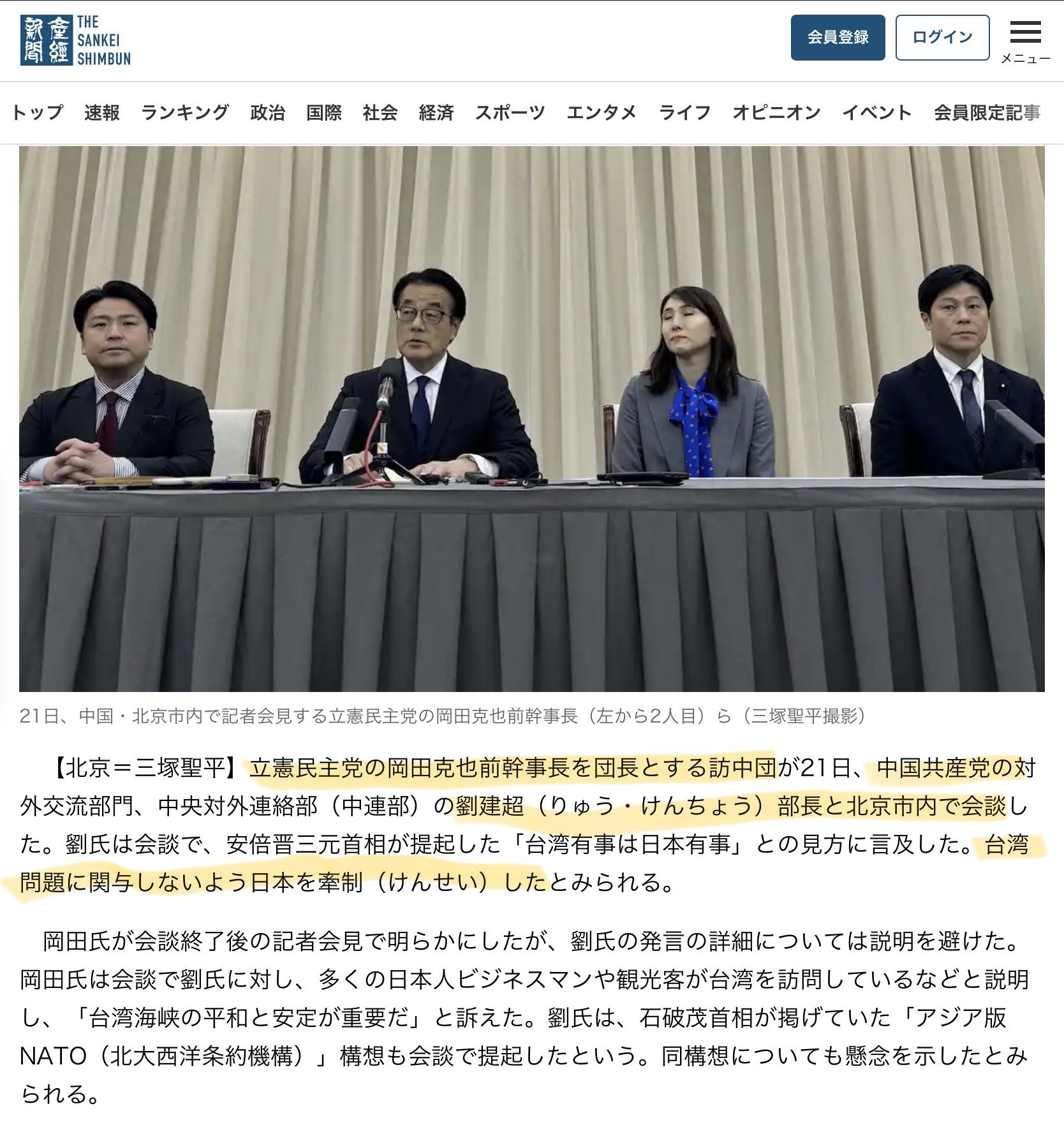 弟は東京新聞。岡田家はまさに反日。日本を陥れ中国に媚び金儲け。