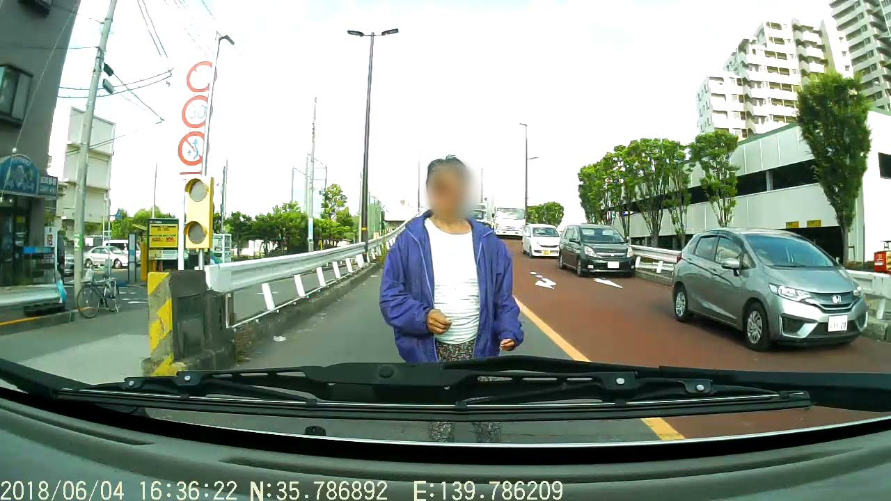 これはおじちゃんなのかおばちゃんなのか。東京都足立区栗原4丁目で撮影されたうp主の車を目視しながら飛び出してくる人のビデオです。動画は1分07秒から再生してください。これ明らかにうp主の車を狙って飛び出してきてるよなあ?