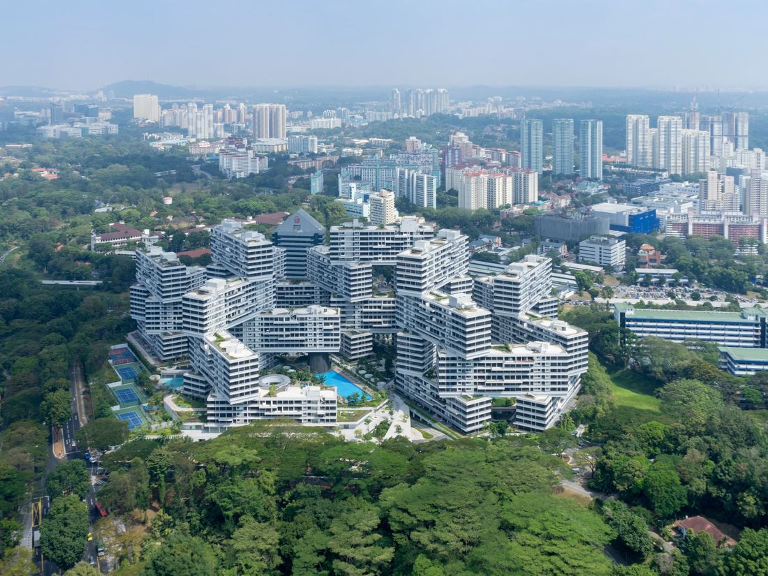 有名な集合住宅地インターレースですね 2013年に建てられた最近の建築物 日本と違って地震がほぼないからこそ建てられる
