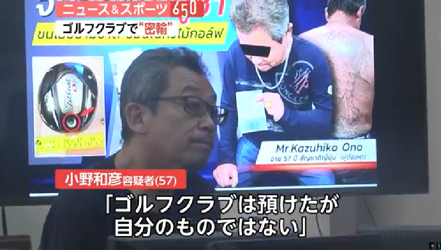 逮捕は12日。警察によると、小野容疑者は日本に帰国するタイ在住の知人に「知り合いがゴルフバッグを忘れたから持って帰ってほしい」と頼み、ドライバーなどの入ったゴルフバッグを渡した。